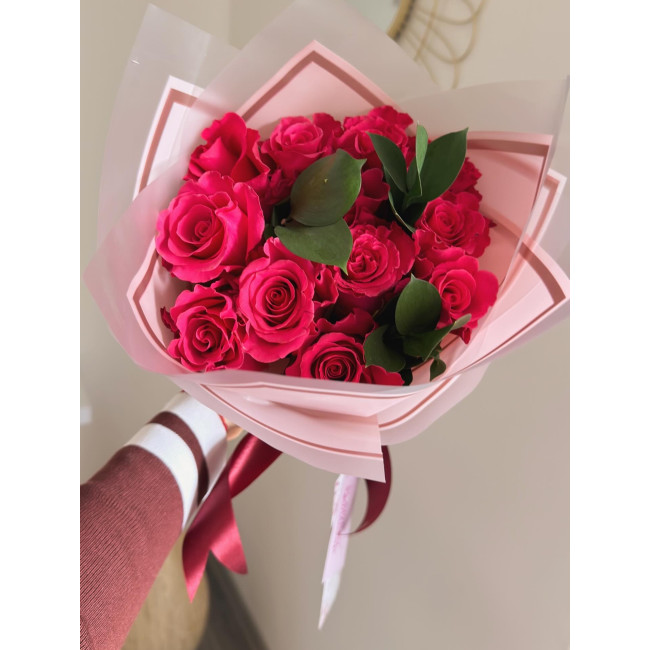 Exquisito buquet con rosas naturales unicolor con 12 unidades .