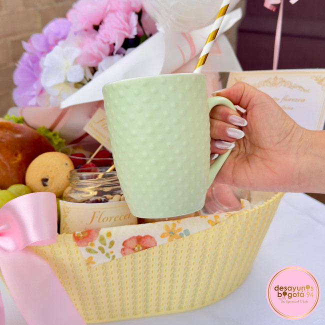 * Mug de cerámica en hermosos tonos pastel que resaltan la frescura de cada nuevo día.